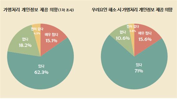 1차 조사에서 개인정보 제공 의향이 없다고 답한 22.5%는 ▲개인정보 유출 우려(44.4%) ▲무분별한 활용 우려(43.6%) ▲개인정보 독점 우려(11.5%) 등을 꼽았다.