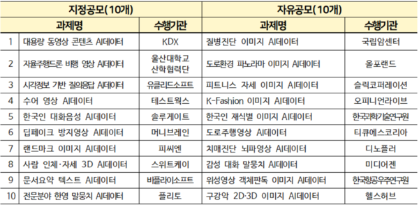 과학기술정보통신부(장관 최기영)는 22일 인공지능(AI) 개발에 필수적인 학습 데이터를 대규모로 구축 및 개방하는 'AI 학습용 데이터 구축 사업' 20개 과제를 확정했다고 밝혔다.
