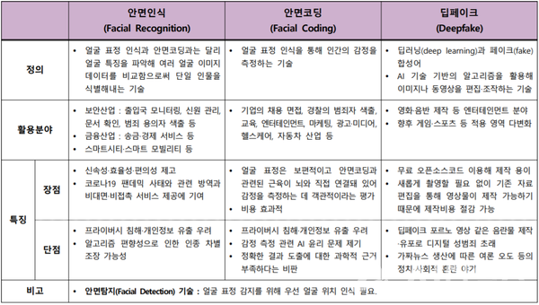 '안면인식'과 '딥페이크'를 둘러싼 논쟁이 심화되고 있다. 한쪽에서는 개인 프라이버시 침해를 이유로 제약을 가해야 한다고 주장하는 반면 다른 한쪽에서는 미래를 위한 유망기술로 활용을 넓혀가야 한다고 주장한다.