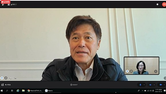 박정호 SK 텔레콤 대표가 인공지능(AI) ’누구 컨퍼런스 2020’에서 지적했다. 이 날 박 대표는 SK텔레콤 5G 기반 그룹영상통화 서비스 ‘미더스(MeetUs)’로 환영사를 전했다.
