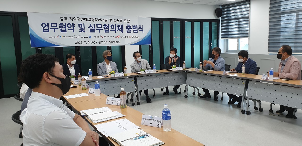 또 재난취약시설 현장정보제공서비스 플랫폼 개발, SW품질관리, 실증장소 선정 및 설계 등 실증지원, 서비스 품질 향상을 위한 영상 및 데이터 분석 기술지원 등 체계적인 협력체계구축을 통해 성공적인 사업추진과 상용화 촉진 및 성과확산을 위한 협력을 함께 노력할 예정이다. 사업 기간은 올해 말까지로 충북과학기술혁신원은 사업주관, 시큐웨어는 서비스 개발, 한전KDN은 영상분석 기술지원, 옥천소방서는 서비스 실증 지원 등 사업의 성공적인 추진을 위해 실무협의체를 구성 운영한다.