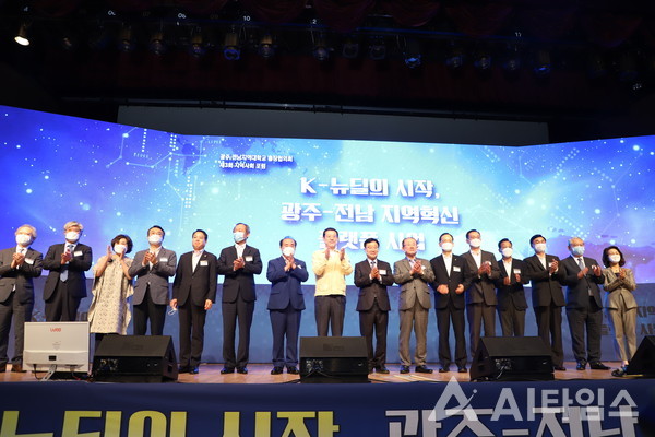 광주-전남지역혁신 플랫폼 사업이 본격 출범했다. 광주전남지역대학교 총장협의회(회장 김혁종)는 28일 전남대학교 컨벤션홀에서 'K-뉴딜의 시작, 광주전남지역혁신 플랫폼 사업'에 대한 소개와 출범식을 겸한 제3회 지역사회 포럼을 개최했다. 이날 포럼에서는 광주·전남 지역 5개 대학 총장과 이용섭 시장, 송상락 전남도 행정부지사 등 50여명 관계자들이 참여해 사업추진의 힘과 지혜를 모았다.