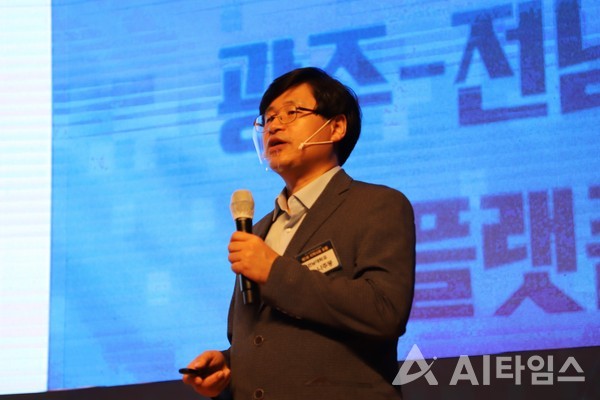 광주·전남 지역혁신 플랫폼 사업 소개를 맡은 나주몽 전남대 미래위원회 상임위원은 수도권과 지방의 인구 불균형과 그동안 지자체와 대학간의 연계 협력 부족을 꼬집으며 사업 전략을 제시했다. 나 교수는 "그동안 지자체와 대학간에는 연계협력이 부족했다"며 "한국형 뉴딜정책의 시작과 더불어 지역혁신의 기회로 삼아야 한다”고 말했다.