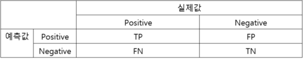 이러한 결괏값을 정리한 표를 '혼동행렬(confusion matrix)'이라 한다. 분류 문제는 기본적으로 혼동행렬의 값을 활용한 성능 지표를 사용하게 된다. 자세한 내용은 추후 성능 평가에서 다룬다.