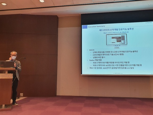 첫 번째 프로젝트에 대해 배영우 메디리타 대표는 “이미 만들어졌지만 약으로 사용된 바 없는 화합물을 질병에 활용하는 연구에서 1년이 걸렸던 작업을 1달안에 완료하는 성과를 보였고 기업과 컨소시엄을 구성해 프로젝트를 진행하고 있다”고 말했다.