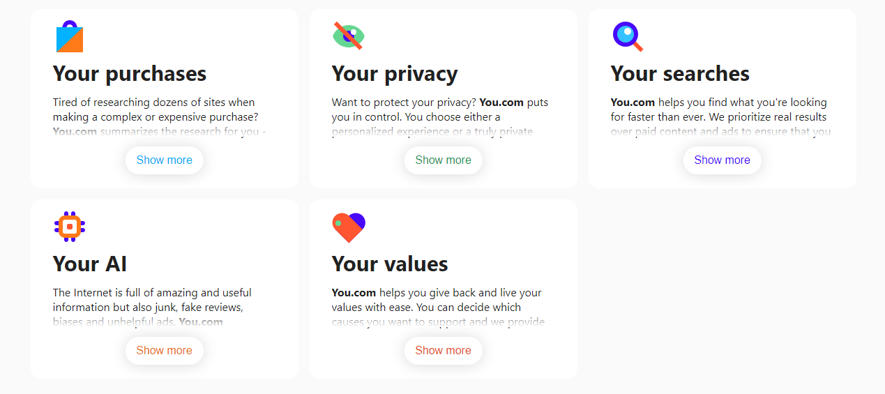 YOU.COM은 구글 검색엔진과는 다른 방향을 추구한다. 광고와 사용자 정보와 데이터에 의존하지 않는 새로운 검색 서비스를 제공한다는 것.