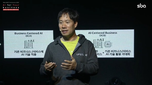 김성훈 업스테이지 대표 겸 홍콩과기대 교수가 AI 활용 디지털트랜스포메이션을 고민하는 기업들에게 노하우를 전달했다. 김성훈 교수는 14일 SBA AI&DT 컨퍼런스 2020서 '비즈니스 중심 AI에서 AI중심 비즈니스로'라는 주제로 발표를 진행했다.