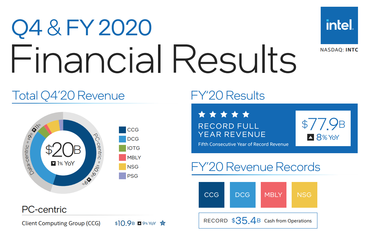 21일(현지시간) 인텔은 2020년 4분기 실적을 발표하며, 자사 PC 사업이 작년에 비해 33% 증가했으며, 특히 노트북 매출이 30% 증가했다고 밝혔다.