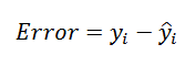위에서 설명한 바와 같이 오차는 실젯값 y_i과 모델의 예측값 y ̂_i의 차이를 말한다.