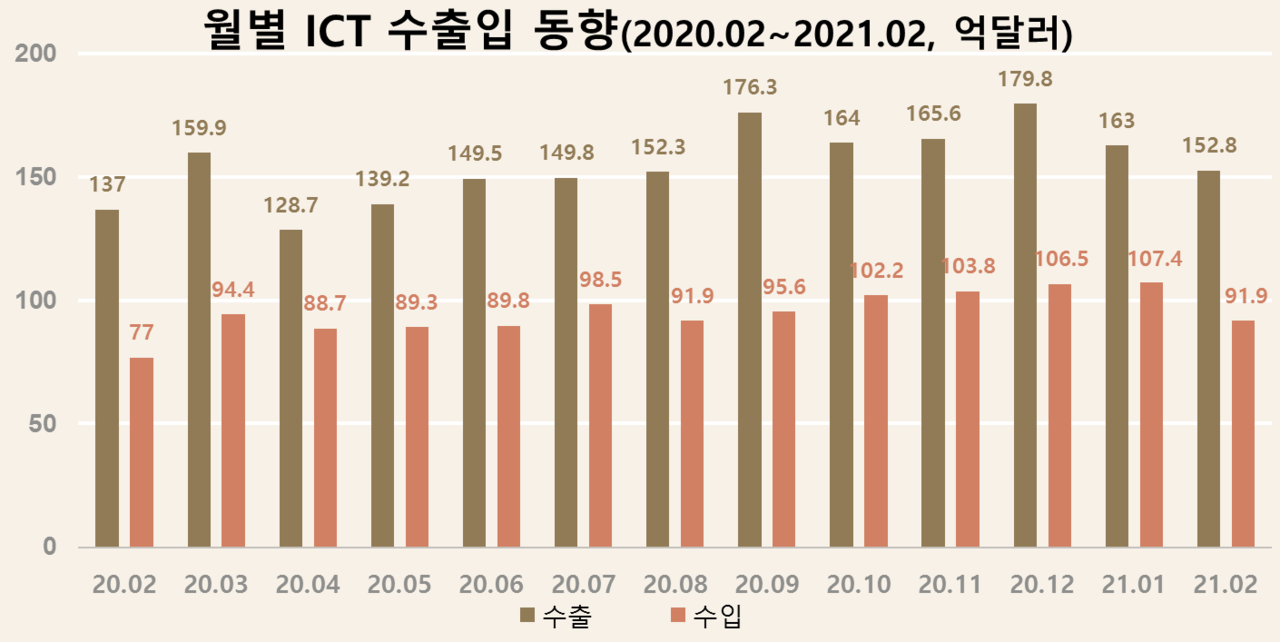 과학기술정보통신부(장관 최기영)는 이와 같은 내용의 ‘2월 ICT 수출입 동향’ 잠정 집계 결과를 15일 발표했다.