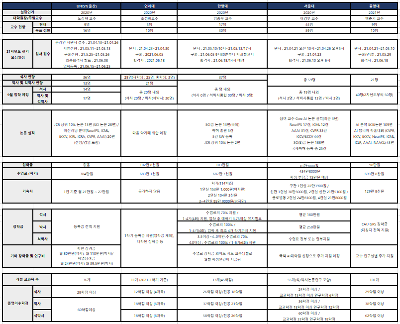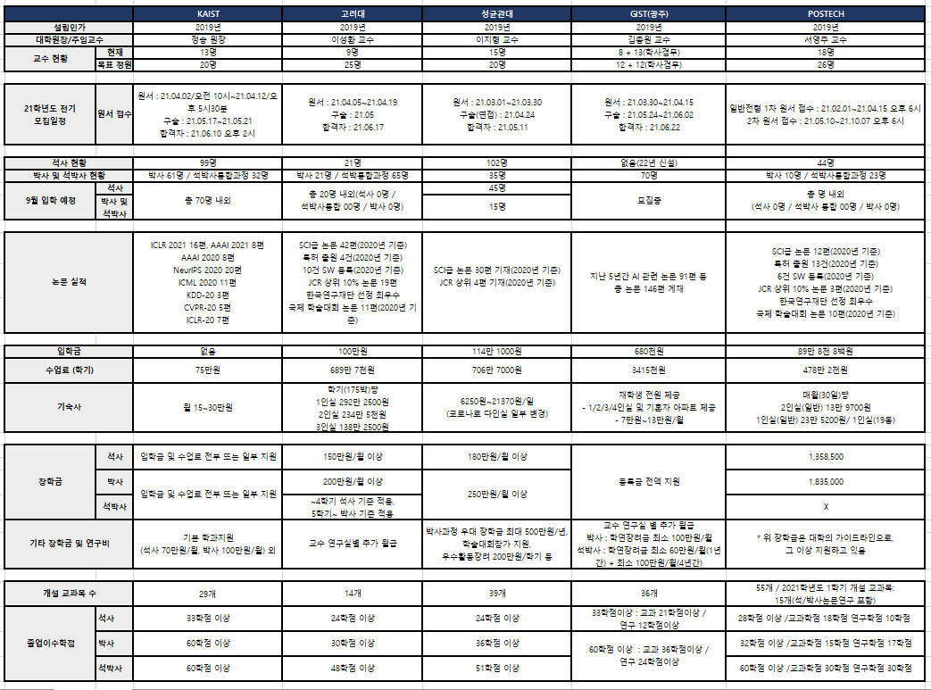 - [기획연재] 한국의 10대 인공지능 대학원 현황 표