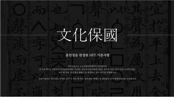 간송미술관 측은 "암울했던 일제강점기에 문화의 가치를 인식하고 문화유산 보호와 연구에 힘썼던 간송(澗松) 전형필 선생의 문화보국 정신을 담아 훈민정음 해례본을 '훈민정음 NFT' 한정판으로 만들어 보존하기로 했다"고 전했다.