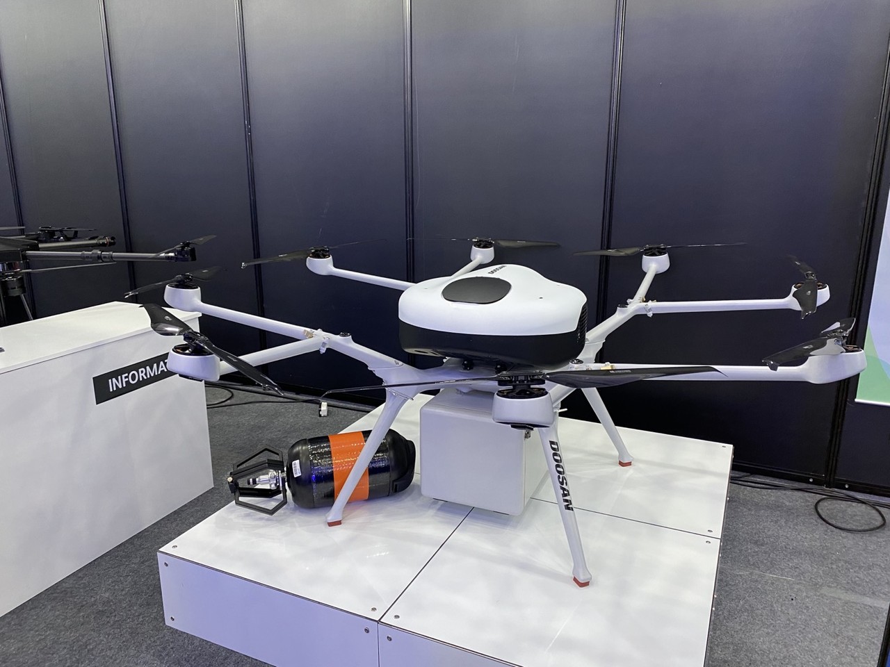 '두산모빌리티이노베이션'이 장시간 비행 가능한 배송 드론을 선보였다. 수소 연료를 사용해 2시간 넘게 비행한다. 기체는 총 1000시간 넘게 날 수 있다. 기업 관계자는 “LTE나 RF 통신으로 거리 제약 없이 비행할 수 있다"고 설명했다. 장거리인 만큼 발생할 수 있는 갑작스러운 상황에 대비했냐고 묻자, 그는 “다양한 실증 테스트를 거쳤다"고 답했다. “비행 중 추락할 수 있다"며 “(이를 대비한)충격 테스트, 화염 테스트, 내압 테스트 등 다양한 실증실험에 통과했다"고 했다.