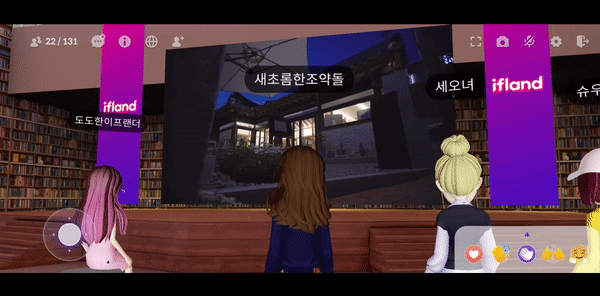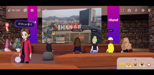 우선 이프랜드 애플리케이션(앱)을 실행하고 아바타를 만들었다. 겨울 한파로 밖을 돌아다니기에는 추운 날씨지만, 메타버스에서는 따뜻한 실내에 앉아 투어를 할 수 있기 때문에 짧은 치마로 한껏 멋을 부려봤다. 행사장에 입장하니 다른 아바타들이 이미 자리를 잡고 앉아 있었다. 투어 진행을 맡은 사회자 아바타는 본격적인 시작에 앞서 메타버스 플랫폼 사용법에 대해 설명했다.