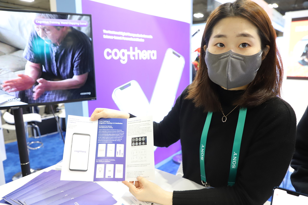 (미국 라스베이거스=AI타임스 구아현 기자) = ㈜이모코그(emocog)가 5~7일(현지시) 미국 라스베이거스에서 열린 세계 최대 가전‧정보기술 전시회 ‘CES 2022’에서 경도인지장애‧경도치매 환자를 위한 디지털 치료제 '코크테라(Cogthera)'를 공개했다. 이는 인지 저하 정도를 경감시켜 치매 진행도를 유지할 수 있도록 돕는 소프트웨어다. 치매 질환 예방이 전 세계적 관심사로 부상한 만큼 이모코그의 디지털 치료제에 관람객들의 시선이 모아졌다.