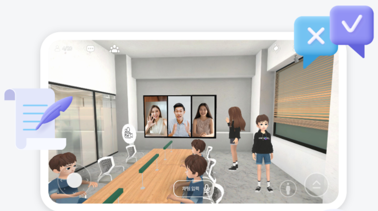# 직장인 이 모씨는 스마트폰을 통해 지도에서 오늘 외부 미팅이 예정된 A기업을 검색한다. 그러자 A기업을 그대로 미러링한 가상세계가 펼쳐진다. 이 씨의 아바타는 마치 실제 A기업에 와 있는 것처럼 가상공간을 자유롭게 돌아다니면서 회의실로 이동, 다른 아바타들과 만나 인사를 나눈다. 이어 스크린을 통해 화상 채팅으로 미팅을 진행한다.