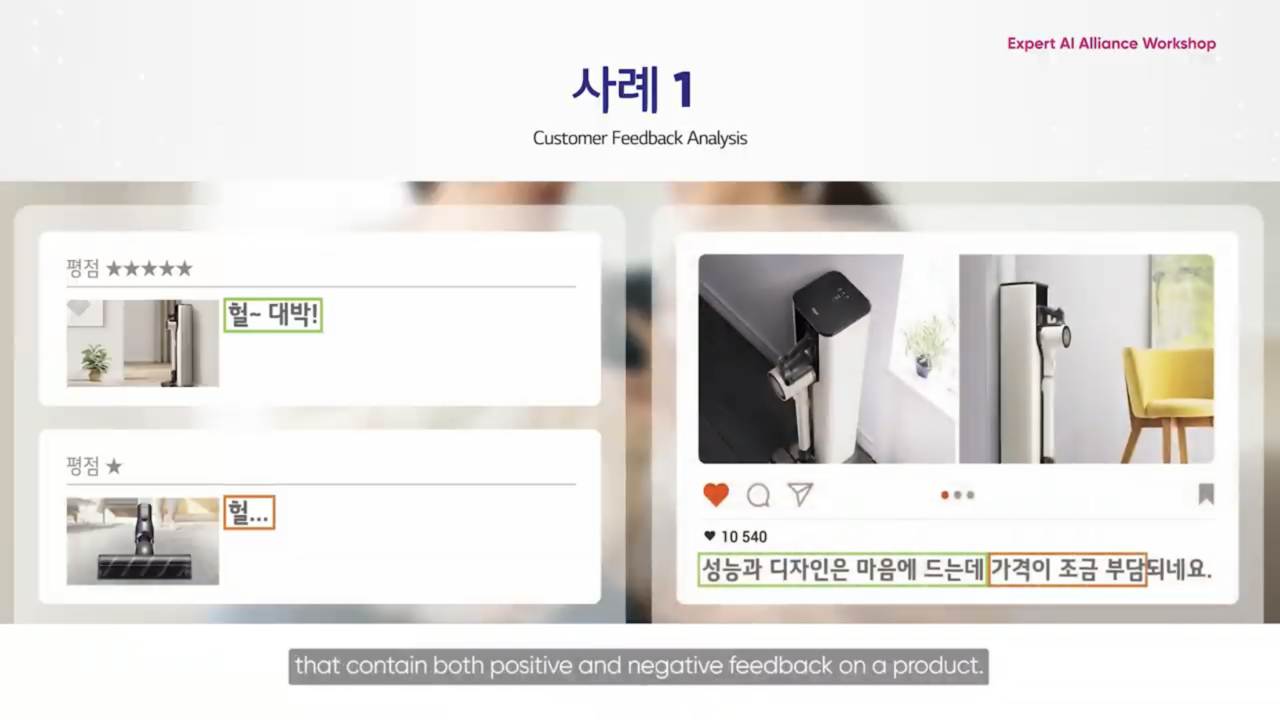그는 LG전자가 고객 피드백 분석을 하기 위해 AI를 사용하고 있지만 더 정확한 피드백 분석을 위해선 초거대 AI 활용이 필요하다고 주장했다. 고객이 남긴 피드백에는 긍정과 부정 사례가 혼합되어 있는 경우가 있고 소셜미디어를 통해 사진과 감탄사 등으로 남겨진 것도 많아 이를 정확히 분석하기 위해선 기존 AI 기술을 넘어 초거대 AI가 필요하다는 설명이다.