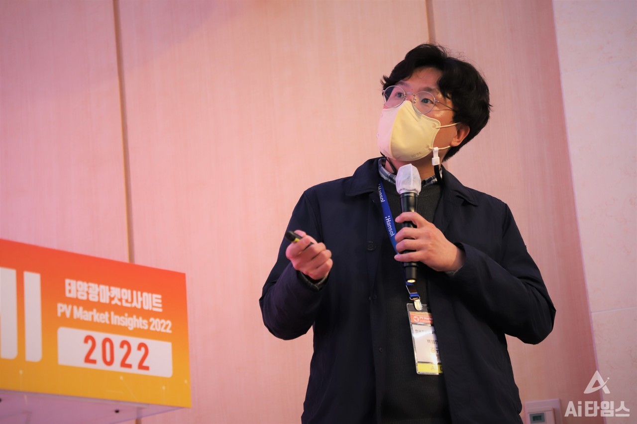 한국건설생활환경시험연구원의 김규진 책임연구원이 14일 '2022 태양광 마켓 인사이트(PVMI 2022)' 컨퍼런스에서 '건물 태양광 표준화와 시험인증'에 대한 주제 발표를 펼쳤다. 그는 이날 건물일체형태양광발전시스템(BIPV)의 정의·분류와 관련 정책 및 국내외 표준화 등에 대한 이야기를 풀어갔다.