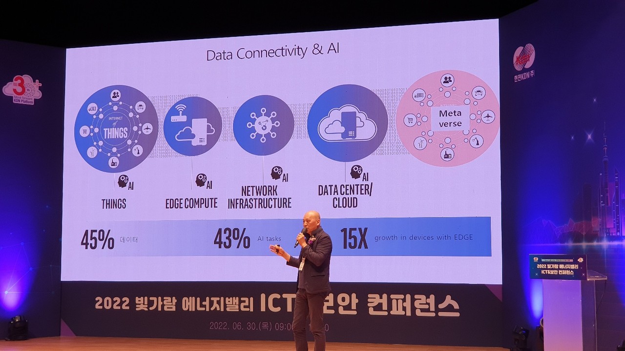 한전KDN이 주최한 '2022 빛가람 에너지밸리 ICT&보안 컨퍼런스'에서는 이주석 인텔코리아 부사장이 '반도체회사가 바라본 인공지능과 클라우드 세상'이라는 주제로 기조연설을 진행했다. 이 부사장은 인공지능(AI)와 클라우드 시대가 도래한 상황에서 글로벌 시대에서 살아남기 위해서는 데이터 수집이 가장 중요하다고 강조했다.