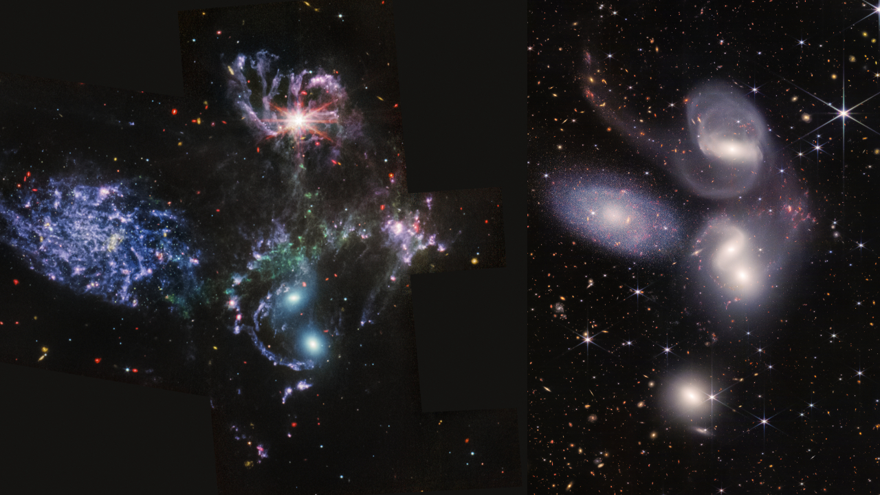 이 슈테팡의 퀸텟은 1877년 프랑스 천문학자 에두아르 슈테팡(Édouard Stéphan)이 처음 발견한 은하군으로 허블 망원경에 의해 그 아름다운 실체가 확인되면서 천문학계에서는 유명하다. 허블 망원경은 2009년 카메라 교체 작업을 통해 해당 은하의 선명한 이미지를 보내왔는데 당시 이미지는 여러 프레임으로 나뉘어 있는 것을 각도에 맞게 배열해 묶은 것이었다. 하지만 이번 JWST의 이미지는 한 프레임에 이 은하군을 모두 담을 수 있었다.