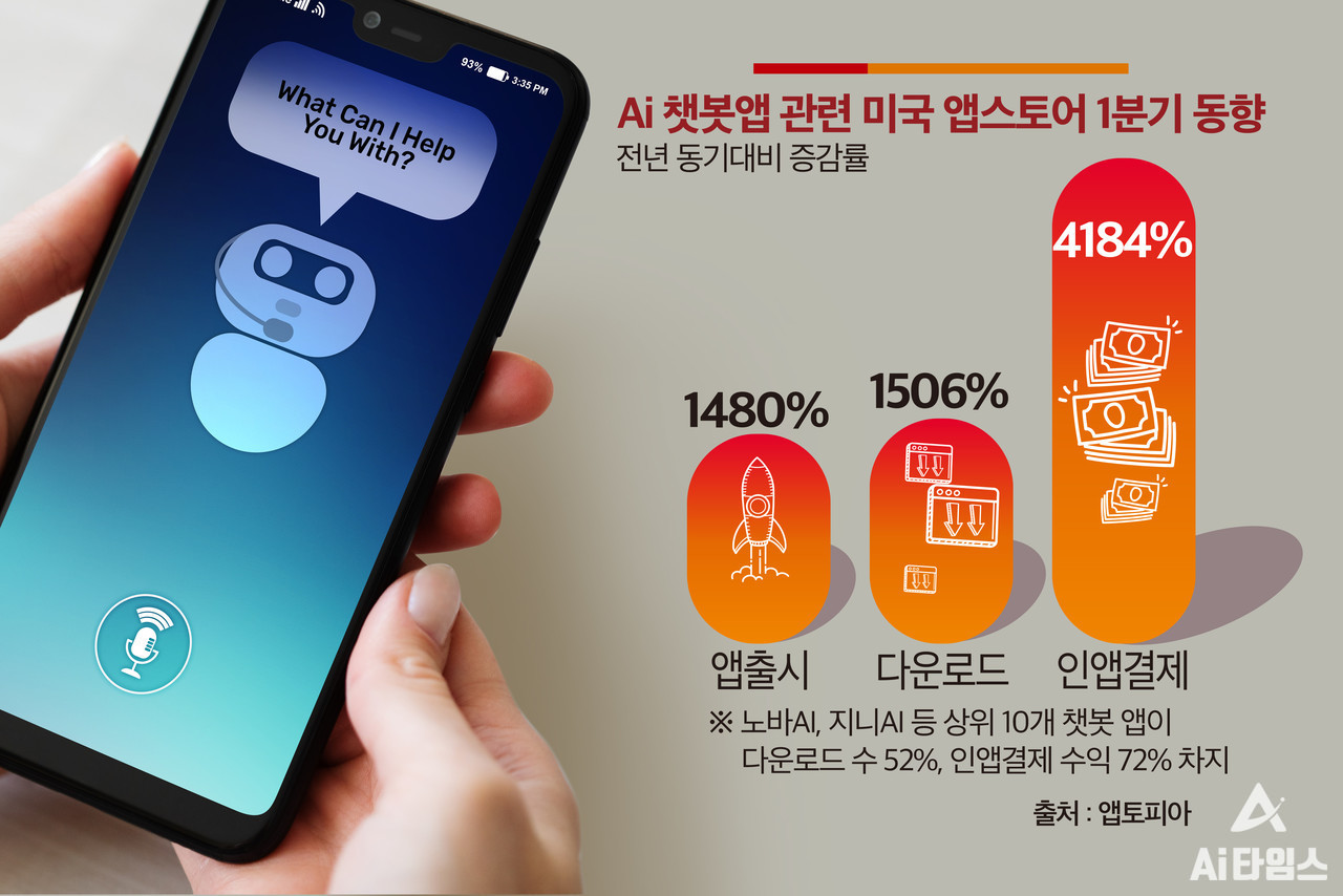 AI 챗봇 앱의 다운로드도 지난달에만 2000만회를 기록하면서 1분기에 전년동기 대비 15배가 늘었습니다.
