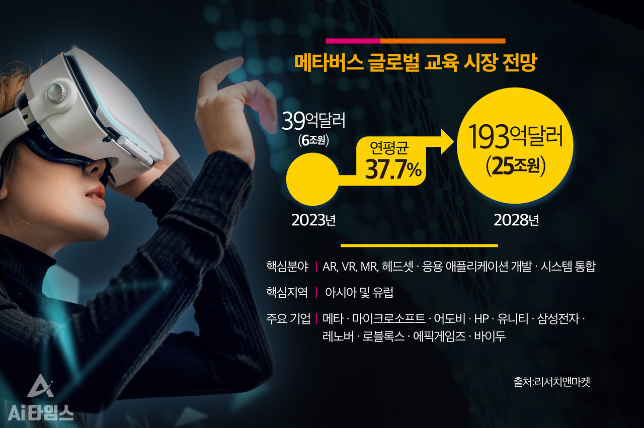 리서치앤마켓은 2일(현지시간) 보고서를 통해 2023년 39억달러(약 6조원) 규모인 글로벌 메타버스 교육 시장이 2028년에는 193억달러(약 25조원)로 성장할 것이라는 예측을 내놓았다.