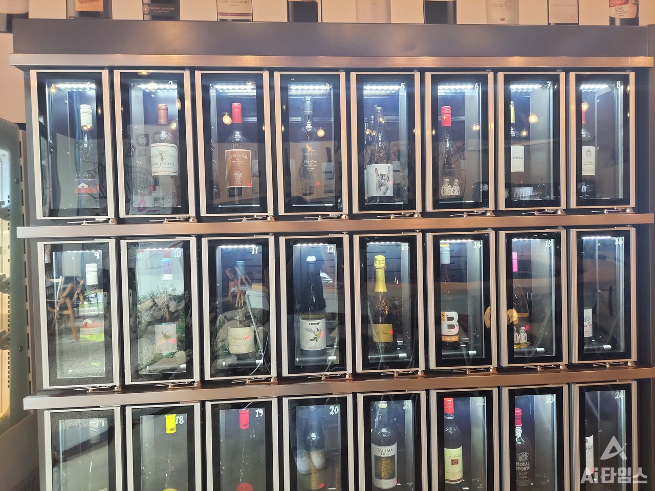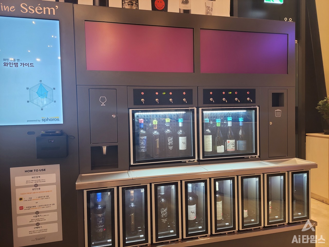 첫인상은 그랬지만, 이내 벤딩 머신 몇대를 이어 붙인 모듈형 장치라는 걸 깨달았다. 한쪽엔 '병'으로 와인을 구매할 수 있는 셀러형 머신이, 바로 옆엔 한 잔 시음이 가능한 디스펜서형 머신이 자리잡고 있었다. 병을 살 생각은 없었지만, 괜히 기계를 만지작거려 봤다.