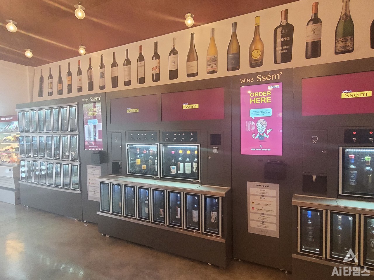 일단 탁 트인 쇼룸은 와인과 제법 잘 어울리는 분위기였다. 테이블과 장식물을 최소화, 개방감을 살린 듯했다. 바디감이 과하지 않고 산뜻한 와인처럼, 적당히 고급스러운 캐주얼함이 풍겼다. 뒤늦게 돌아본 내부 좌측에는 '첨단 기술을 갖춘 와인 벤딩 머신'이 자리 잡고 있었다.