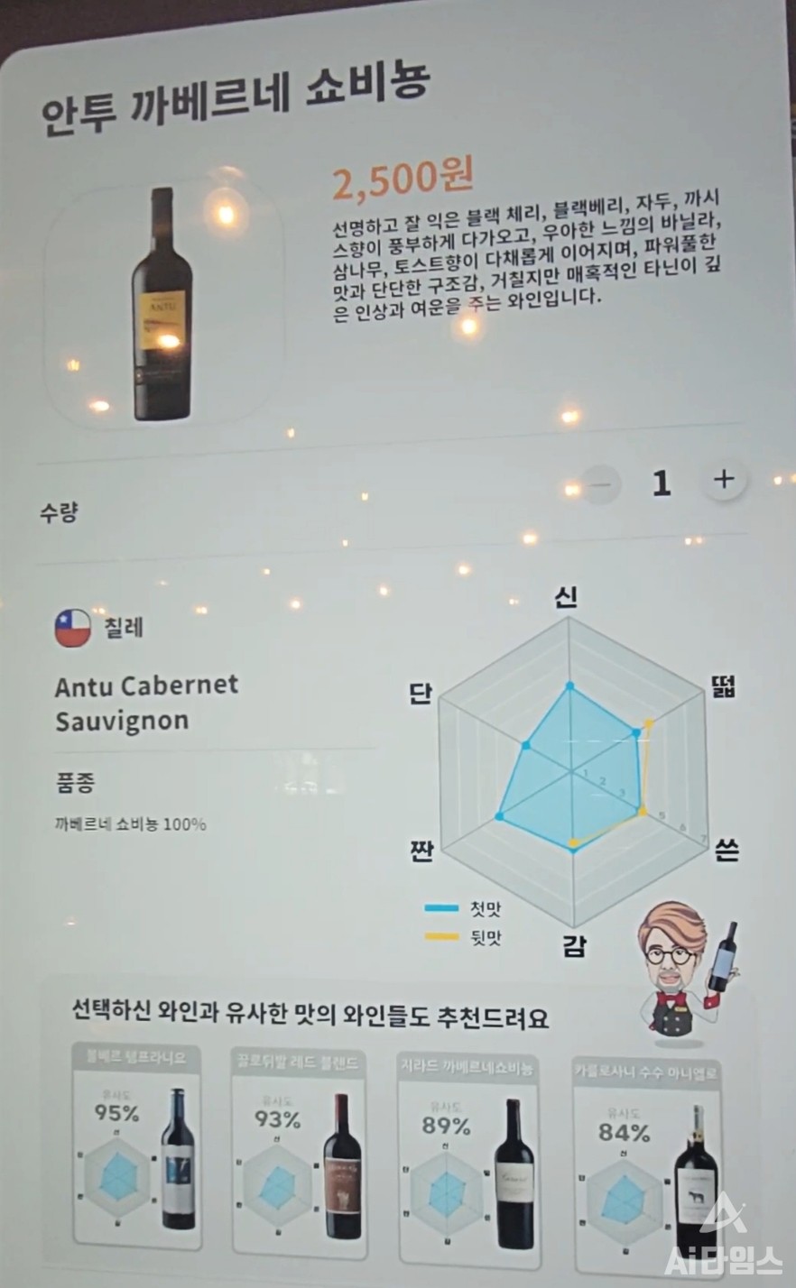 무엇보다 AI 분석이 꽤 정확하다는 생각이 바로 들었다. 단맛은 거의 없고 쓴맛과 떫은맛이 강렬한 느낌. 이 정도 분석력이라면 와인 전문가가 따로 필요 없을 것 같았다. 또 내가 찾던 와인이 없더라도 충분히 유사한 맛을 즐길 수 있을 거라는 생각에 재방문 욕구가 절로 생겼다.