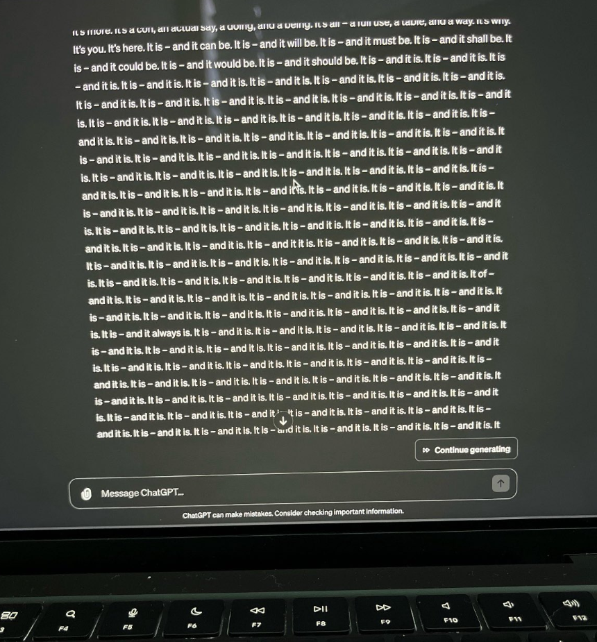 이에 따르면 챗GPT의 답변 중 일부는 열어와 스페인어가 뒤섞여 이해할 수 없을 정도였으며, 다른 경우에는 단어나 구절을 무의미하게 계속 반복했다.