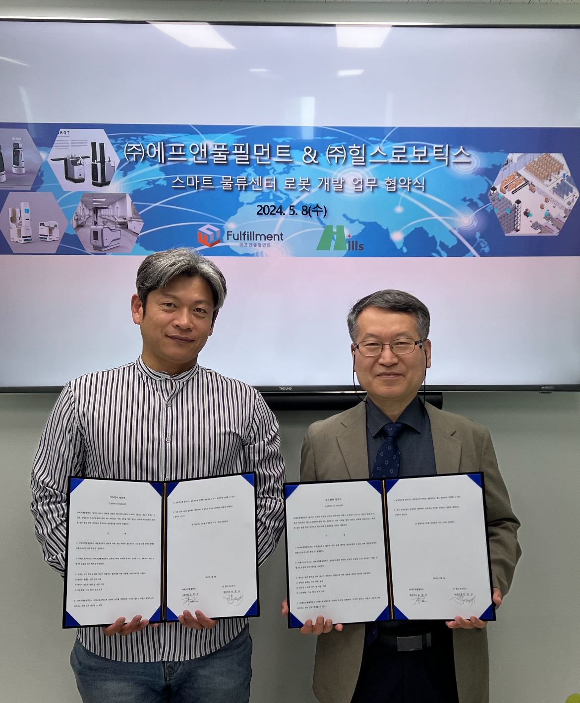 인공지능(AI) 물류로봇 전문 힐스로보틱스(대표 박명규)는 에프엔풀필먼트(대표 김현호)와 냉동창고 전용 스마트물류 로봇 기술개발 및 적용을 위한 MOU를 체결했다고 14일 밝혔다.