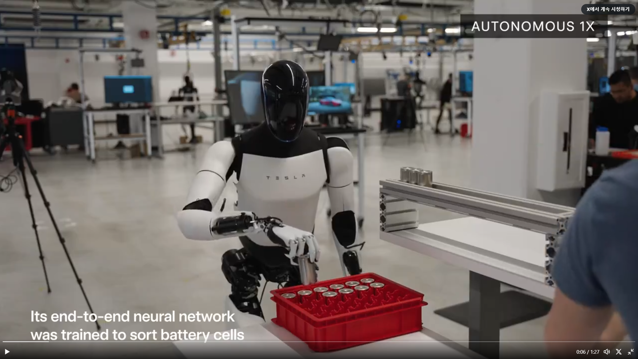 이와 관련, 테슬라는 가장 최근인 지난달 X를 통해 옵티머스가 공장에서 부품을 정리하는 영상을 공개한 바 있다. 이를 통해 옵티머스가 하는 작업을 엿볼 수 있다는 평이다.
