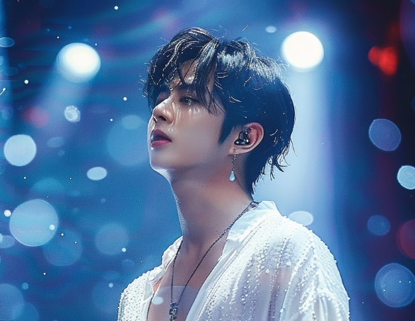 a hansome korean male idol performing on stage, full body shot (사진=크레비쥬)