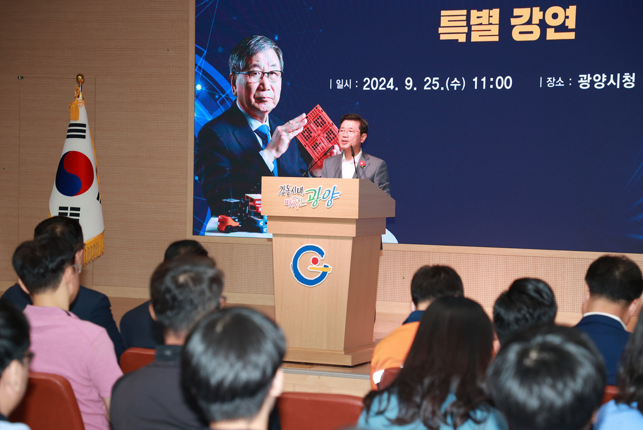 서병륜 로지스올 그룹 회장이 지난 25일 광양시청에서 '광양항의 미래 물류가치를 선도하기 위해 함께 가는 길'이라는 주제로 특강을 개최했다.