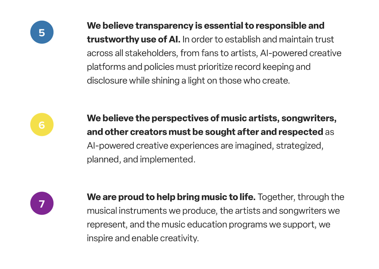 AI 포 뮤직은 세계 최대의 음반사인 유니버설 뮤직 그룹과 세계적인 전자악기 제조사 롤랜드가 전략적 파트너십을 맺고, 음악 산업 내 AI의 책임 있는 사용을 명문화한 일련의 가이드라인이다.