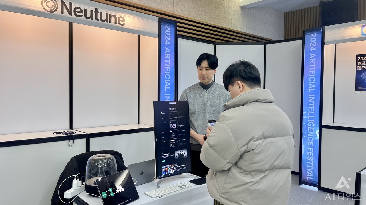 생성 AI를 활용한 다양한 분야의 콘텐츠 제작하는 기업들도 여럿 참가했다. ▲데뷧타이, 드로울리 등 이미지 생성 AI 플랫폼 운영사 디오비스튜디오 ▲음악생성 AI 전문 뉴튠 ▲AI 작곡 서비스를 전시한 아이스크림에듀 ▲ 웹툰 생성AI 오노마에이아이 ▲AI디지털휴먼 솔루션 전문 이스트소프트 ▲버추얼아이돌 이터니티 제작사 펄스나인 등이 각사의 제품을 전시했다. 또 가온프라임 AI 콘텐츠 창작자들을 위한 노코드 콘텐츠 생성 플랫폼 '노르디'를 소개했다.