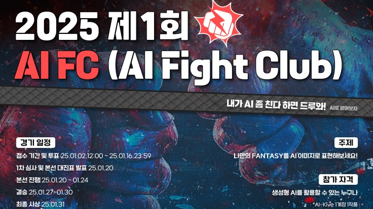 이번 공모전은 'AI 파이트 클럽(AI FC)'이라는 콘셉트로, 2일부터 16일까지 후보작을 모집 중이다. '나만의 판타지를 AI로 표현하라'라는 주제의 생성 이미지와 한줄짜리 텍스트 스토리를 이벤트 페이지에 업로드하는 방식이다.