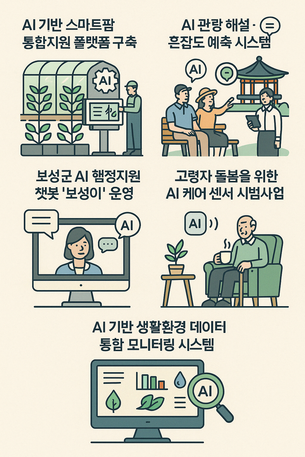 보성군은 ▲농업 중심 지역경제 구조 ▲고령화 인구 구조 ▲차 문화·해양 자원 중심의 관광산업 등 특색 있는 자산을 보유하고 있음에도, AI 기술 도입은 아직 초기 단계다.