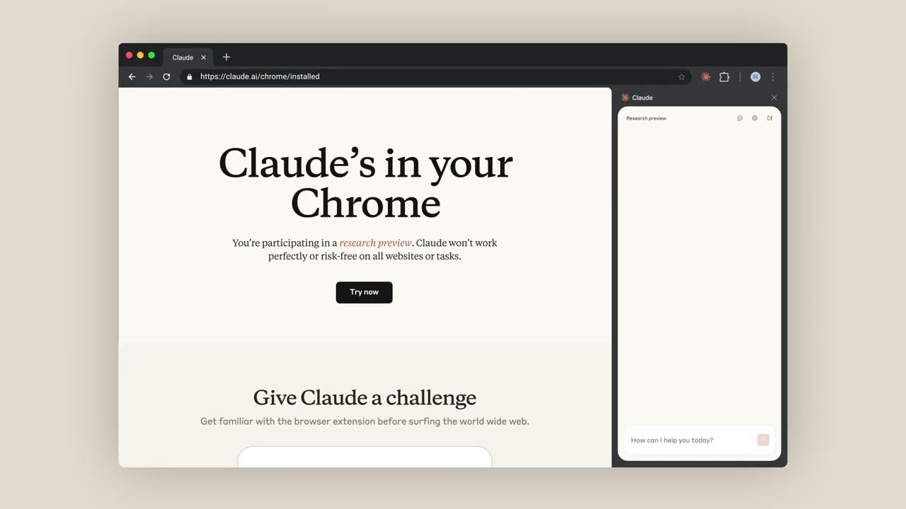 앤트로픽은 26일(현지시간) 클로드를 활용한 브라우저 기반 AI 에이전트 ‘크롬용 클로드(Claude for Chrome)’의 연구 프리뷰를 선보인다고 밝혔다.