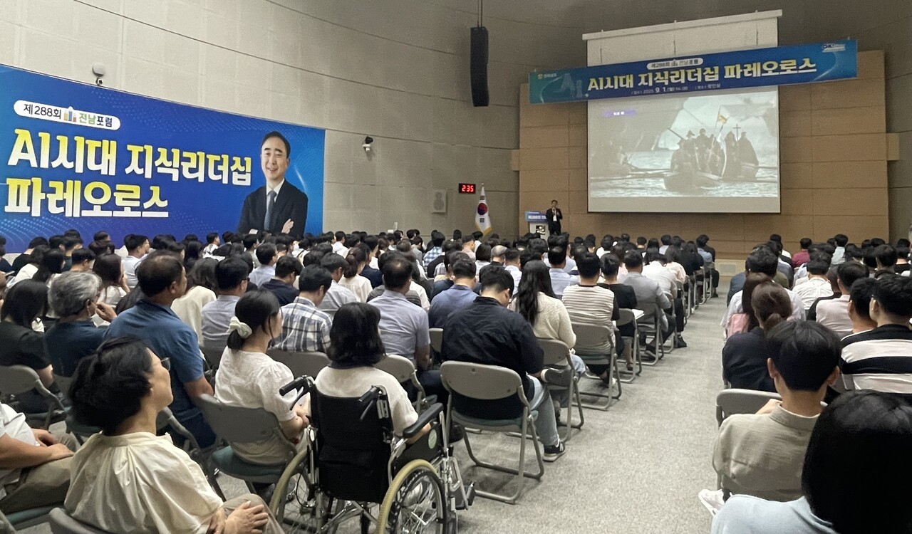 전라남도는 1일 도청 왕인실에서 임문영 미래전환 대표를 초청해 'AI시대의 지식 리더십, 파레오로스'를 주제로 제288회 전남포럼을 개최했다.