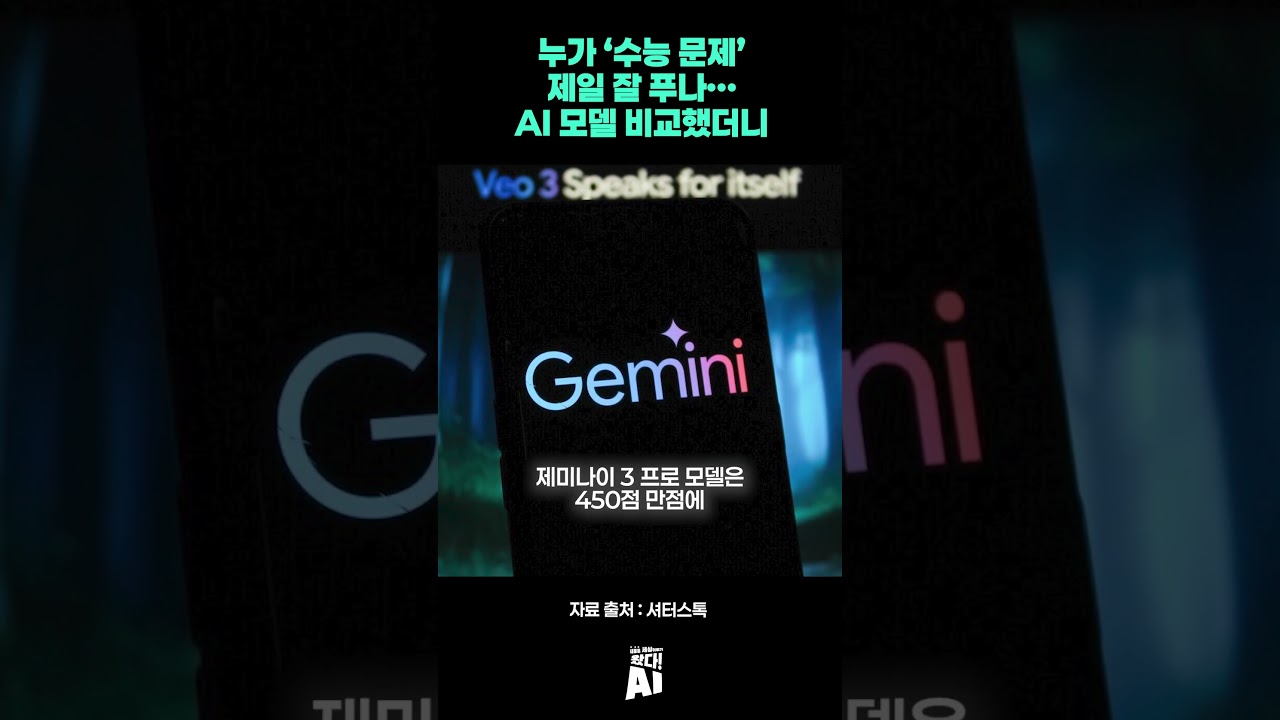 AI타임스 조예주 기자 joyejuoffice@aitimes.com 좋아요0 관련기사 “제미나이 3로 2026 수능 풀어보니”...GPT-5.1 누르고 압도적 1위 조예주 기자 joyejuoffice@aitimes.com 다른기사 보기 키워드 #수능 #제미나이 3 #GPT-5.1 #깃허브 #2026 수능 저작권자 © AI타임스 무단전재 및 재배포, AI학습 및 활용 금지 개의 댓글 회원로그인 작성자 비밀번호 댓글 내용입력 댓글 정렬 최신순 추천순 답글순 BEST댓글 BEST 댓글 답글과 추천수를 합산하여 자동으로 노출됩니다. 닫기 더보기 댓글삭제 삭제한 댓글은 다시 복구할 수 없습니다. 그래도 삭제하시겠습니까? 비밀번호 댓글수정 댓글 수정은 작성 후 1분내에만 가능합니다. 본문 / 400 비밀번호 내 댓글 모음 닫기