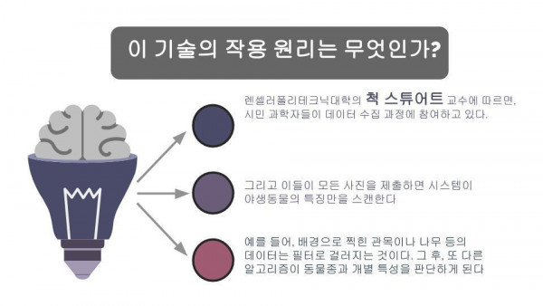 렌셀러폴리테크닉대학의 척 스튜어트 교수에 따르면, 시민 과학자들이 데이터 수집 과정에 참여하고 있다. 그리고 이들이 모든 사진을 제출하면 시스템이 야생동물의 특징만을 스캔한다. 예를 들어, 배경으로 찍힌 관목이나 나무 등의 데이터는 필터로 걸러지는 것이다. 그 후, 또 다른 알고리즘이 동물종과 개별 특성을 판단하게 된다.
